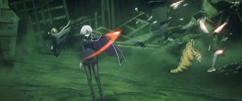 After the cutscene, there’s a scene with Snow White in the infirmary. Similar to Chime, the cut was SO clean that repairing Snow White wasn’t difficult. Scarlet’s damage is so severe that removing her brain is dangerous until she stabilizes. And Rapunzel is apparently lucky that part of her head managed to survive, so her brain is safe.