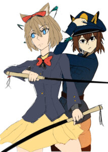 As you can see in the drawing on the left, I’m a huge fan of bows. The bigger the better. Next time, I might leave out the bow on top of her head since I really want that thing behind Amagi’s head to be more emphasized. I’m not even sure what they are, they’re like antennae? I also would like to experiment with taking the catgirl ears away and having the antennae look like ears instead. I think it could work.