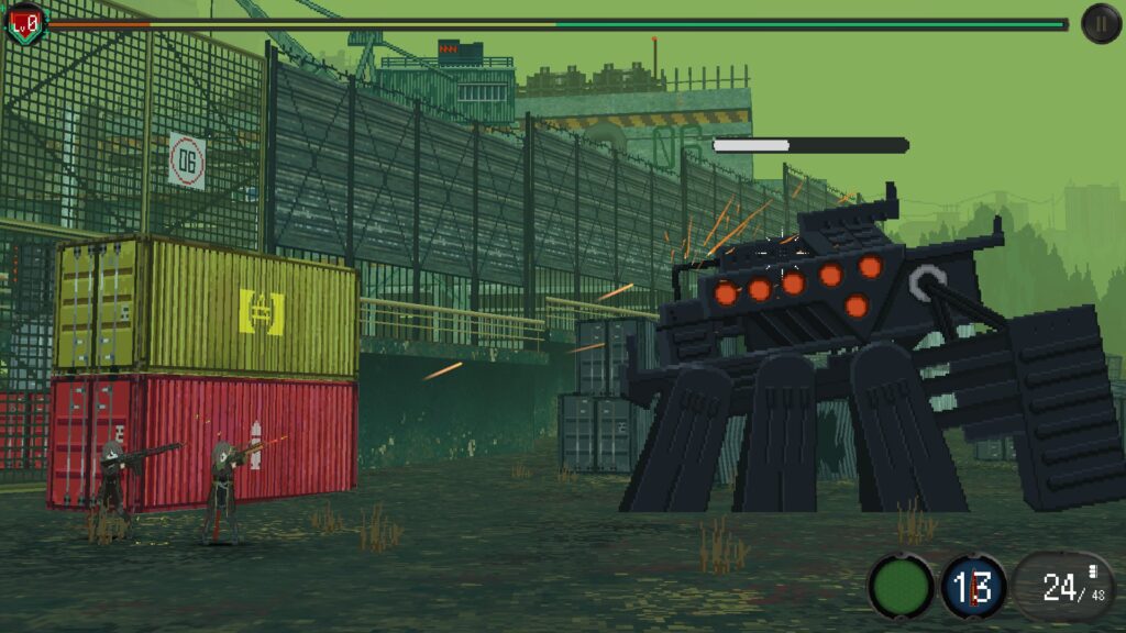 It’s a twin-stick shooter / defense game where you stop waves of robot war machines from invading the country. Aside from the many types of weapons, there are also special tools and gadgets that can help you reach the ending of the game.